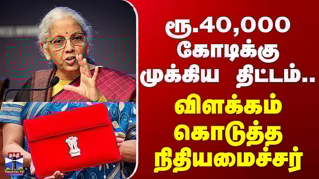 ரூ.40,000 கோடிக்கு முக்கிய திட்டம்.. விளக்கம் கொடுத்த நிதியமைச்சர் "பொருளாதார நிலைத்தன்மைக்கு உறுதி அளிக்கும் பட்ஜெட்" - நிர்மலா சீதாராமன் பொருளாதார வளர்ச்சி வேகத்தைத் தக்கவைக்க, உற்பத்தித்திறன் உயர்வு மற்றும் வேலைவாய்ப்பு உருவாக்கத்திற்கு ஏற்ற சூழல் தொடர்ந்து உருவாக்கப்படும் என மத்திய பட்ஜெட் உறுதி அளித்திருப்பதாக நிதி அமைச்சர் நிர்மலா சீதாராமன் தெரிவித்துள்ளார்.