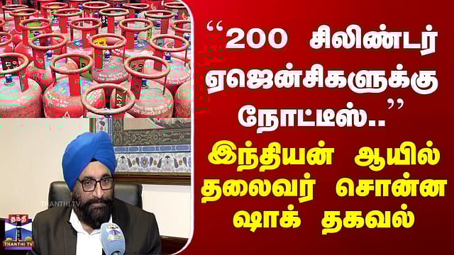 Cylinder Crisis | Indian Oil | ``200 சிலிண்டர் ஏஜென்சிகளுக்கு நோட்டீஸ்..'' | இந்தியன் ஆயில் தலைவர் சொன்ன ஷாக் தகவல் #cylindercrisis #indianoil #lpgshortage #thanthitv முறைகேடு செய்த சிலிண்டர் ஏஜென்சி மீது நடவடிக்கை - இந்தியன் ஆயில் சிலிண்டர் தட்டுப்பாடு விவகாரத்தில் முறைகேடு செய்த சிலிண்டர் ஏஜென்சி மீது நடவடிக்கை எடுக்கப்படும் என இந்தியன் ஆயில் நிறுவனத்தின் தலைவர் அர்விந்த் சிங் தந்தி டிவிக்கு பேட்டி அளித்துள்ளார்...