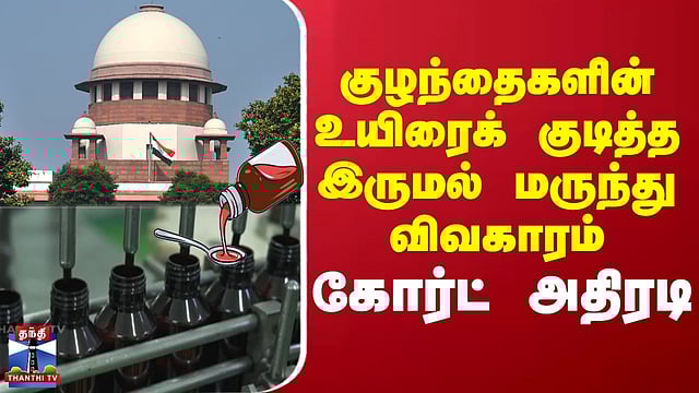Supreme Court | Cough Syrup | குழந்தைகளின் உயிரைக் குடித்த இருமல் மருந்து விவகாரம் - கோர்ட் அதிரடி தரமற்ற இருமல் மருந்து விவகாரம்- மத்திய அரசுக்கு நோட்டீஸ் தரக்குறைவான இருமல் மருந்து விவகாரத்தில் நீதிமன்ற கண்காணிப்பின்கீழ், விசாரணை கோரிய மனுவுக்கு பதில் அளிக்குமாறு மத்திய அரசுக்கு உச்சநீதிமன்றம் நோட்டீஸ் அனுப்பியது. மத்திய பிரதேச மாநிலம் சிந்த்வாராவில் தரக்குறைவான இருமல் மருந்து உட்கொண்டதாக குழந்தைகள் உள்பட 11 பேர் உயிரிழந்தது பரபரப்பை ஏற்படுத்தியது. இந்த விவகாரத்தில் காஞ்சிபுரத்தை சேர்ந்த மருந்து ஆலையின் பெயரும் அடிபட்டது குறிப்பிடத்தக்கது.