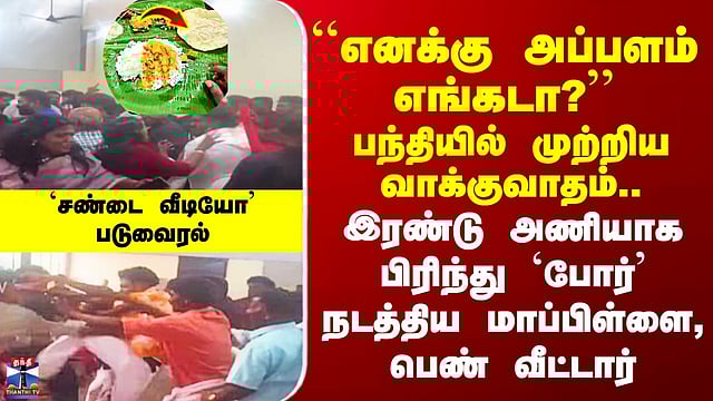 Marrigae Fight Viral Video | இரண்டு அணியாக பிரிந்து `போர்’ நடத்திய மாப்பிள்ளை, பெண் வீட்டார் #marriage #appalam #viralvideo #kerala கேரளாவில் திருமண விருந்தில் அப்பளம் கிடைக்காததால் தகராறு - அடிதடி கேரள மாநிலம் திருவனந்தபுரத்தில் திருமண விருந்தின் போது அப்பளம் கிடைக்காததால் உருவான தகராறு அடிதடியில் முடிந்தது விருந்துகளின் போது புரோட்டாவுக்கும் சாம்பாருக்கும் அடிதடி நடைபெற்ற நாட்கள் உண்டு. தற்போது அப்பளத்திற்காக மோதிக்கொண்ட சம்பவம் பரபரப்பை ஏற்படுத்தி வருகிறது. கேரள மாநிலம் திருவனந்தபுரத்தில் நடைபெற்ற திருமண விருந்தின்போது உணவுப் பதார்த்தங்கள் வழங்கி கொண்டிருந்தபோது அப்பளமும் வழங்கப்பட்டது. ஆனால், ஒருவருக்கு அப்பளம் வழங்காததால் ஏற்பட்ட வாய் தகராறு, பெரிதாகி மணமகன் உறவினர்களும் மணமகள் உறவினர்களும் கும்பலாக மோதிக் கொள்ளும் நிலைக்கு மாறியது. இதனால், திருமண விருந்து அடிதடி விருந்தாக மாறிய நிலையில், இரு காவல் நிலையங்களைச் சேர்ந்த போலீசார் விரைந்து சென்று தலையிட்டனர். இரு தரப்பிலிருந்தும் ஒரு சிலருக்கு காயம் ஏற்பட்டாலும் இரு தரப்பினரும் புகார் அளிக்க முன்வராததால் போலீசார் வழக்கு பதிவு செய்ய முடியாமல் திரும்பச் சென்றனர். நருவாமூடு, மாரநல்லூர் ஆகிய இரு காவல் நிலையங்களின் எல்லை பகுதியான நீரமண்கரை பகுதியில் உள்ள திருமண மண்டபத்தில் இந்த சம்பவம் நடைபெற்றதால், இரு காவல் நிலைய போலீசாரும் விரைந்து சென்றிருந்தனர். அப்பளத்திற்காக திருமண விருந்தின் போது நடைபெற்ற அடிதடி காட்சி தற்போது சமூக வலைத்தளங்களில் வைரல் ஆகி வருகிறது