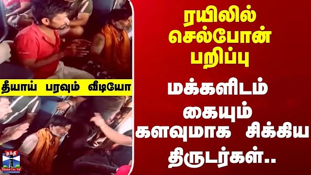 Train Cell Phone Theft | ரயிலில் தொடரும் செல்போன் பறிப்பு - பொதுமக்களிடம் கையும் களவுமாக சிக்கிய திருடர்கள்.. தீயாய் பரவும் வீடியோ நாகர்கோவில் - மும்பை எக்ஸ்பிரஸ் ரயிலில் பெண்ணிடம் செல்போன்களைப் பறித்து தப்பியோட முயன்ற திருடனை, சக பயணிகள் துணிச்சலாக விரட்டிப் பிடித்து போலீசாரிடம் ஒப்படைத்தனர். மும்பை அருகே குர்டுவாடி - தவுண்ட் இடையே மர்ம நபர்கள் இருவர், ஒரு பெண்ணிடமிருந்த இரண்டு செல்போன்களைப் பறித்துக்கொண்டு மின்னல் வேகத்தில் தப்பியோட முயன்றனர். அப்போது பயணிகள் துணிச்சலாக செயல்பட்டு, திருடர்களில் ஒருவரை மடக்கிப் பிடித்தனர். தொடர்ந்து நடைபெறும் திருட்டுகளைத் தடுக்க ரயில்வே பாதுகாப்பை அதிகரிக்க வேண்டும் என பயணிகள் கோரிக்கை விடுத்துள்ளனர்.