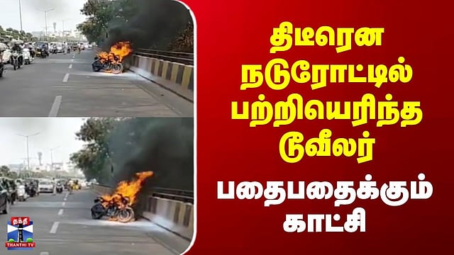 Hyderabad Bike Fire | திடீரென நடுரோட்டில் பற்றியெரிந்த டூவீலர் | பதைபதைக்கும் காட்சி #hyderabad #bikefire #bikeaccident #thanthitv ஹைதராபாத்தில் சாலையில் சென்றபோது திடீரென தீ பிடித்து எரிந்த இருசக்கர வாகனம் - பரபரப்பு பொதுமக்கள் எச்சரித்ததால் அசம்பாவிதம் தவிர்ப்பு