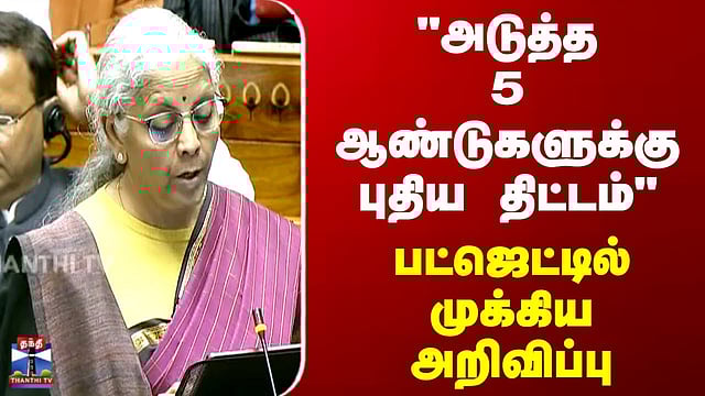 "அடுத்த 5 ஆண்டுகளுக்கு புதிய திட்டம்" - பட்ஜெட்டில் முக்கிய அறிவிப்பு "3 கடமைகளை அடிப்படையாக கொண்ட பட்ஜெட்" மத்திய பட்ஜெட், மூன்று கடமைகளை அடிப்படையாகக் கொண்டு தயாரிக்கப்பட்டுள்ளதாக, நிதி அமைச்சர் நிர்மலா சீதாராமன் தெரிவித்தார். தொடர் வளர்ச்சியை விரைவுப்படுத்துவது, உற்பத்தி அதிகரிப்பு மற்றும் பொருளாதார வளர்ச்சியை மேம்படுத்துவது ஆகியவை தான் அந்த 3 கடமைகள் என குறிப்பிட்டார்.
