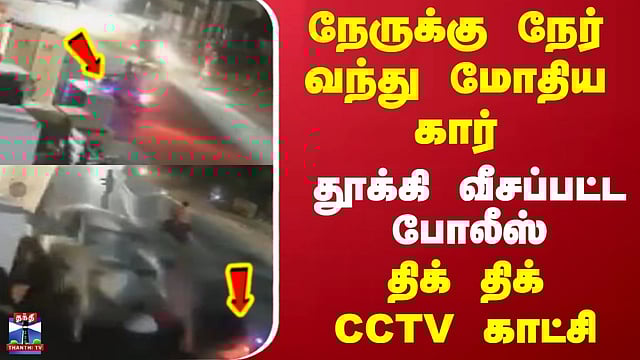 நேருக்கு நேர் வந்து மோதிய கார்.. தூக்கி வீசப்பட்ட போலீஸ்.. திக் திக் CCTV காட்சி