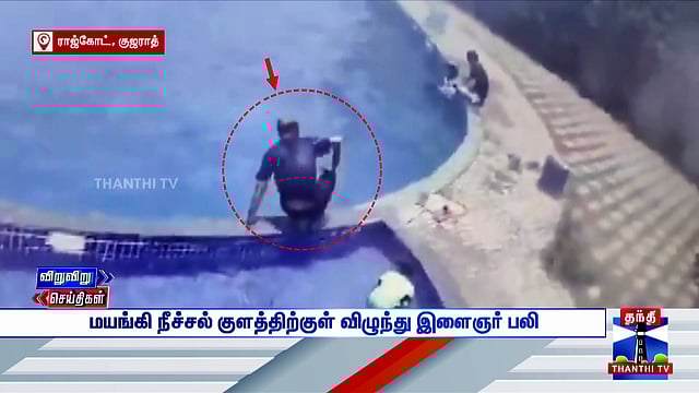 குஜராத் மாநிலம் ராஜ்கோட் காக்வாட் பகுதியில் உள்ள ரிசார்ட்டில், 33 வயதான அஜய் ரதோடு என்ற இளைஞர் நீச்சல் குளத்தின் அருகே நின்று கொண்டிருந்தபோது எதிர்பாராதவிதமாக திடீரென மயங்கி குளத்திற்குள் விழுந்தார்.