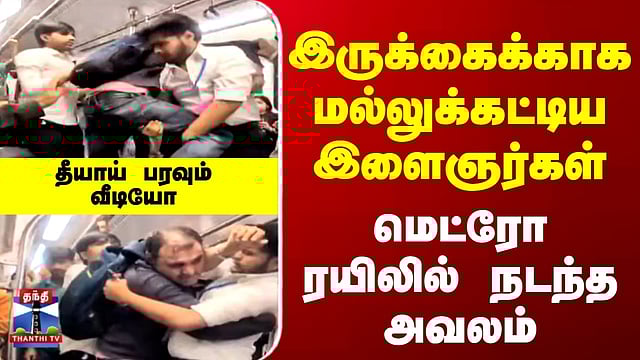 இருக்கைக்காக மல்லுக்கட்டிய இளைஞர்கள்.. மெட்ரோ ரயிலில் நடந்த அவலம் #metro #metrotrains #fighting #viralvideo #video #thanthitv #delhimetro #delhi மெட்ரோ ரயிலில் இருக்கைக்காக சண்டையிட்ட இருவர் டெல்லி மெட்ரோ ரயிலில் இருக்கைக்காக பயணிகள் இடையே ஏற்பட்ட தகராறு கைகலப்பாக மாறி பரபரப்பை ஏற்படுத்தியது.
