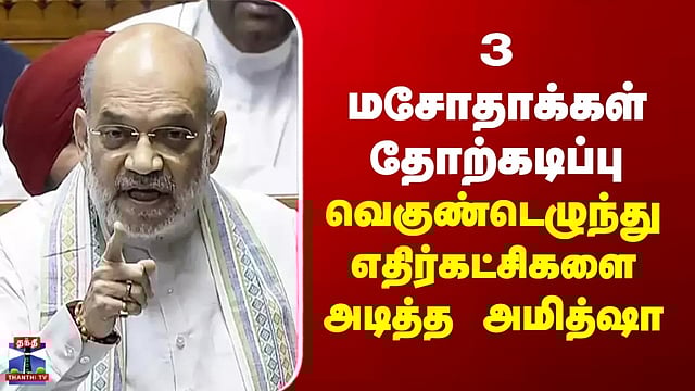 Constituency Delimitation | 3 மசோதாக்கள் தோற்கடிப்பு - வெகுண்டெழுந்து எதிர்கட்சிகளை அடித்த அமித்ஷா #amitshah #ConstituencyDelimitation #thanthitv மகளிர் இடஒதுக்கீடு சீர்திருத்த மசோதா மக்களவையில் தோல்வியடைந்ததைத் தொடர்ந்து, காங்கிரஸ் உள்ளிட்ட எதிர்க்கட்சிகள் 'பெண் சக்தியை' அவமதித்துவிட்டதாக மத்திய உள்துறை அமைச்சர் அமித்ஷா கடுமையாகச் சாடியுள்ளார். இது தொடர்பாக தனது சமூக வலைதளப் பக்கத்தில் பதிவிட்டுள்ள அவர், மகளிர் இடஒதுக்கீட்டு சீர்திருத்த மசோதாவை காங்கிரஸ், திமுக, திரிணாமுல் காங்கிரஸ் மற்றும் சமாஜ்வாதி கட்சிகள் தடுத்து நிறுத்தியது கண்டிக்கத்தக்கது என்றும் பெண்களுக்கு 33 சதவீத இடஒதுக்கீடு வழங்கும் மசோதாவை முறியடித்துவிட்டு, அதனை வெற்றிக் கூச்சலிட்டு கொண்டாடுவது கற்பனை செய்ய முடியாத ஒரு கீழ்த்தரமான செயல் என்றும் எதிர்க்கட்சிகளை கடுமையாக விமர்சித்துள்ளார். காங்கிரஸ் மற்றும் அதன் கூட்டணிக் கட்சிகளின் இந்தச் செயலால், நாடாளுமன்றம் மற்றும் சட்டமன்றங்களில் பெண்களுக்கு கிடைக்க வேண்டிய 33% இடஒதுக்கீடு உரிமை பறிக்கப்பட்டுள்ளதாக குற்றம் சாட்டியுள்ள அமித்ஷா, இந்த செயலுக்காக, இனி வரும் ஒவ்வொரு தேர்தல்களிலும் எதிர்க்கட்சிகள் பெண்களின் கோபத்திற்கு ஆளாக நேரிடும் என்றும் எச்சரித்துள்ளார்.