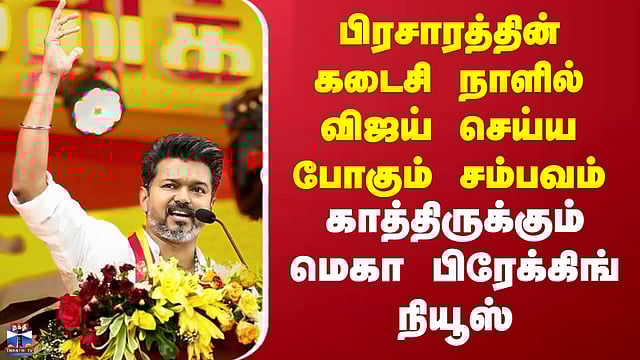 TN Election 2026 | பிரசாரத்தின் கடைசி நாளில் விஜய் செய்ய போகும் சம்பவம் காத்திருக்கும் மெகா பிரேக்கிங் நியூஸ் #TVK | #vijay #election2026 #campaign #tnelection2026 #tamilnaduelection2026 #tnassemblyelection2026 #tamilnaduelection #tnelection #tnassemblyelection #assemblyelection #electioncommission #election2026 #electionswiththanthitv #thanthitv #therthalthiruvizha ஏப்.21ல் விஜய் தலைமையில் தவெக மாநில செயல்வீரர்கள் கூட்டம் சென்னை நந்தனத்தில் வருகின்ற 21ம் தேதி தமிழக வெற்றிக் கழகத்தின் மாநில செயல்வீரர்கள் கூட்டம் நடைபெற உள்ளது. தமிழக சட்டமன்றத் தேர்தல் பிரசாரம் நிறைவடையும் நாளில் நடக்கும் இக்கூட்டத்திற்கு தவெக தலைவர் விஜய் தலைமை தாங்கவுள்ளார். மேலும் இக்கூட்டத்தில் பூத் பணிகள் குறித்து நிர்வாகிகளுக்கு ஆலோசனைகள் வழங்கப்பட உள்ளன. இதில் விஜய் தனது இறுதிப் பிரசார உரையை ஆற்றவுள்ளதால் பெரும் எதிர்பார்ப்பு எழுந்துள்ளது.