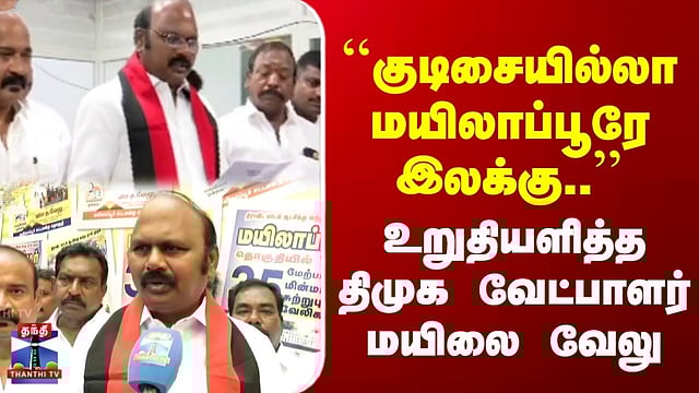 Chennai | DMK | TN Election 2026 | "குடிசையில்லா மயிலாப்பூரே இலக்கு.." | உறுதியளித்த திமுக வேட்பாளர் மயிலை வேலு #chennai #DMK #TNElection2026 #thanthitv குடிசையில்லா மயிலாப்பூரே இலக்கு - திமுக வேட்பாளர் மயிலை வேலு சென்னை மயிலாப்பூர் சட்டமன்றத் தொகுதியில் திமுக சார்பில் மீண்டும் களம் காணும் மயிலை வேலு, தனது வேட்புமனுவை தாக்கல் செய்தார். மனுத் தாக்கலுக்குப் பின் செய்தியாளர்களிடம் பேசிய அவர், "கடந்த 5 ஆண்டுகளில் 5,000 வீடுகளைக் கட்டிக் கொடுத்துள்ளேன், மீதமுள்ள 5,000 வீடுகளையும் கட்டி முடித்து, 'குடிசையில்லா மயிலாப்பூர்' என்ற இலக்கை எட்டுவேன்" என உறுதி அளித்தார். மேலும், கடற்கரையோரம் வசிக்கும் மக்களின் வாழ்வாதாரத்தை உயர்த்தப் புதிய வளர்ச்சித் திட்டங்கள் செயல்படுத்தப்படும் என்றும் அவர் தெரிவித்தார். மயிலாப்பூரில் போக்குவரத்து நெரிசலைக் குறைக்கத் தொடர்ந்து நடவடிக்கை எடுக்கப்படும் எனவும் கூறினார்...