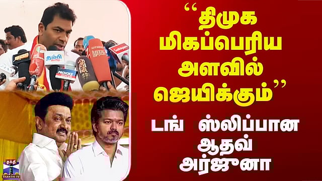 சென்னையில் திமுக வெற்றிபெறும் என வாய் தவறி கூறிய ஆதவ் அர்ஜுனா வில்லிவாக்கத்தில் செய்தியாளர்களிடம் பேசிய தவெக வேட்பாளர் ஆதவ் அர்ஜுனா, சென்னையில் திமுக அதிக தொகுதிகளில் வெற்றி பெறும் என வாய் தவறி கூறியது கவனம் பெற்றுள்ளது. சென்னை வில்லிவாக்கத்தில் மாற்றுக் கட்சியினர் 150 பேர் தவெகவில் இணையும் நிகழ்ச்சியில், பங்கேற்ற பின் செய்தியாளர்களிடம் பேசிய அவர், சென்னையில் உள்ள 16 தொகுதிகளில் 13 தொகுதிகளில் திமுக மிகப்பெரிய வெற்றி பெறும் என பேசினார்.