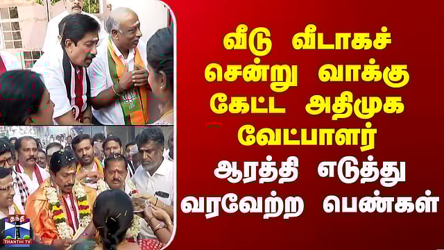 வீடு வீடாகச் சென்று வாக்கு கேட்ட அதிமுக வேட்பாளர் - ஆரத்தி எடுத்து வரவேற்ற பெண்கள்