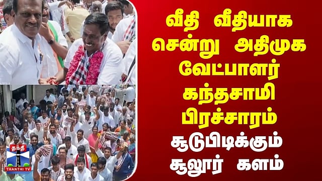 Kovai | ADMK | TN Election 2026 | வீதி வீதியாக சென்று அதிமுக வேட்பாளர் கந்தசாமி பிரச்சாரம் | சூடுபிடிக்கும் சூலூர் களம் #coimbatore #ADMK #TNElection2026 #thanthitv வீதி வீதியாக சென்று அதிமுக வேட்பாளர் கந்தசாமி பிரச்சாரம் கோவை மாவட்டம் சூலூர் சட்டமன்ற தொகுதியில் அதிமுக வேட்பாளர் கந்தசாமி, கூட்டணி கட்சியினருடன் இணைந்து தீவிர வாக்கு சேகரிப்பில் ஈடுபட்டார். சந்தை பேட்டை பகுதியில் தொடங்கிய பிரச்சாரத்தில், அதிமுக வேட்பாளர் கந்தசாமி வீதி வீதியாகச் சென்று இரட்டை இலை சின்னத்திற்கு வாக்கு கேட்டார். ஊர்வலமாக நடைபெற்ற இந்த பிரச்சாரத்தில் பேண்ட் வாத்தியங்கள் முழங்க, கட்சிக் துண்டுகளை சுழற்றியப்படி, உற்சாக முழக்கங்களுடன் கூட்டணி கட்சி நிர்வாகிகள் மற்றும் தொண்டர்கள் பெருமளவில் கலந்து கொண்டனர். மேலும் பொதுமக்களிடம், தொகுதி வளர்ச்சி திட்டங்கள் மற்றும் தேர்தல் வாக்குறுதிகளை எடுத்துரைத்து ஆதரவு திரட்டினார். இந்த ஊர்வலம் சூலூர் பகுதியில் தேர்தல் பிரச்சார சூட்டை மேலும் அதிகரித்தது.