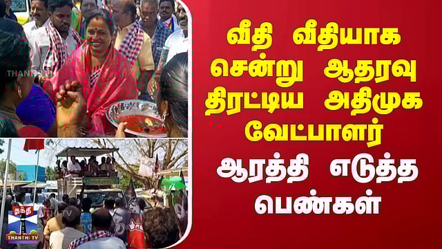 AIADMK | வீதி வீதியாக சென்று ஆதரவு திரட்டிய அதிமுக வேட்பாளர் மரகதம் குமரவேல் - ஆரத்தி எடுத்த பெண்கள் #aiadmk #tnelection2026 #Chengalpattu #thanthitv செங்கல்பட்டு மாவட்டம் மதுராந்தகம் சட்டமன்றத் தொகுதியில் போட்டியிடும் அதிமுக வேட்பாளர் மரகதம் குமரவேல், தனது தொகுதியில் தீவிர வாக்கு சேகரிப்பில் ஈடுபட்டார். வேடந்தாங்கல், வெள்ளபுத்தூர், கர்க்கிலி மற்றும் பாப்பநல்லூர் ஆகிய பகுதிகளில் வீதி வீதியாகச் சென்று அவர் ஆதரவு திரட்டினார். அப்போது அவருக்குப் பெண்கள் ஆரத்தி எடுத்தும், மாலை அணிவித்தும் உற்சாக வரவேற்பு அளித்தனர். இந்தப் பிரச்சாரத்தின் போது அதிமுக அச்சரப்பாக்கம் வடக்கு ஒன்றிய செயலாளர் விவேகானந்தன் மற்றும் தேர்தல் பொறுப்பாளர் வாலாஜாபாத் கணேசன் உள்ளிட்ட முக்கிய நிர்வாகிகள் உடனிருந்தனர். தொகுதி மக்களின் பேராதரவுடன் தனது வெற்றி உறுதி என மரகதம் குமரவேல் நம்பிக்கையுடன் தெரிவித்தார்.