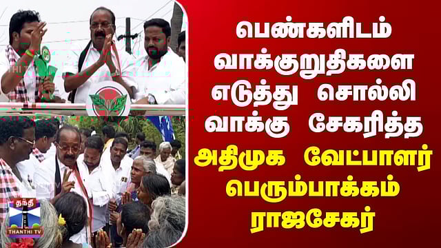 Chengalpattu | ADMK | TN Election 2026 | பெண்களிடம் வாக்குறுதிகளை எடுத்து சொல்லி வாக்கு சேகரித்த அதிமுக வேட்பாளர் பெரும்பாக்கம் ராஜசேகர் #chengalpattu #ADMK #TNElection2026 #thanthitv பெண்களிடம் வாக்கு சேகரித்த அதிமுக வேட்பாளர் பெரும்பாக்கம் ராஜசேகர் செங்கல்பட்டு மாவட்டம் செய்யூர் சட்டமன்றத் தனித் தொகுதி அதிமுக வேட்பாளர் பெரும்பாக்கம் ராஜசேகர், சோத்துப்பாக்கம் மற்றும் மேல்மருவத்தூர் உள்ளிட்ட பகுதிகளில் தீவிர வாக்கு சேகரிப்பில் ஈடுபட்டார். மேல்மருவத்தூர், கீழ்மருவத்தூர் மற்றும் பொறையூர் ஆகிய கிராமங்களில் வீதி வீதியாகச் சென்று இரட்டை இலை சின்னத்திற்கு ஆதரவு திரட்டிய அவருக்கு, அப்பகுதிப் பெண்கள் உற்சாக வரவேற்பு அளித்தனர். அப்போது பெண்களிடம் பேசிய அவர், உங்களில் ஒருவனாக என்னை கருதி சட்டமன்ற உறுப்பினராகத் தேர்ந்தெடுங்கள் என வேண்டுகோள் விடுத்தார். எடப்பாடி பழனிசாமி மீண்டும் முதலமைச்சரானவுடன், அனைத்துக் குறைகளையும் முன்னின்று தீர்த்து வைப்பேன் எனவும் அவர் உறுதி அளித்தார்...