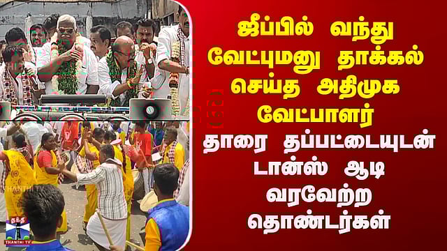 ஜீப்பில் வந்து வேட்புமனு தாக்கல் செய்த அதிமுக வேட்பாளர் பொள்ளாச்சி ஜெயராமன் - தாரை தப்பட்டையுடன் டான்ஸ் ஆடி வரவேற்ற தொண்டர்கள் #aiadmk #pollachijayaraman #tnelection2026 #nomination #thanthitv பொள்ளாச்சி சட்டமன்றத் தொகுதியின் அதிமுக வேட்பாளராகப் போட்டியிடும் முன்னாள் துணை சபாநாயகர் பொள்ளாச்சி ஜெயராமன் வேட்புமனுவைத் தேர்தல் நடத்தும் அலுவலரிடம் தாக்கல் செய்தார். பொள்ளாச்சி அதிமுக கட்சி அலுவலகத்திலிருந்து தொண்டர்கள் புடைசூழ, ஜிப் வாகனத்தில் நின்றவாறு இரட்டை இலை சின்னத்திற்கு வாக்கு சேகரித்தபடி அவர் சார் ஆட்சியர் அலுவலகம் வந்தார். வழியில் திரண்டிருந்த ஏராளமான அதிமுக மற்றும் கூட்டணிக் கட்சித் தொண்டர்கள் தாரை தப்பட்டை முழங்க உற்சாக வரவேற்பு அளித்தனர். இதனைத் தொடர்ந்து, சார் ஆட்சியர் அலுவலகத்தில் தேர்தல் நடத்தும் அலுவலர் ராமகிருஷ்ண சாமியிடம் தனது வேட்புமனுவை அவர் சமர்ப்பித்தார். பொள்ளாச்சியில் அதிமுகவின் வெற்றி உறுதி எனத் தொண்டர்களிடம் கைகுலுக்கி அவர் மகிழ்ச்சியைப் பகிர்ந்து கொண்டார்.