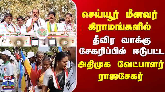 Cheyyur | ADMK | செய்யூர் மீனவர் கிராமங்களில் தீவிர வாக்கு சேகரிப்பில் ஈடுபட்ட அதிமுக வேட்பாளர் ராஜசேகர் #cheyyur #admk #tnelection2026 #electioncommission #tnelection #election2026 #electionswiththanthitv #thanthitv #therthalthiruvizha மீனவர் கிராமங்களில் வாக்கு சேகரித்த அதிமுக வேட்பாளர் செங்கல்பட்டு மாவட்டம் செய்யூர் சட்டமன்ற தொகுதியில் அதிமுக சார்பில் போட்டியிடும் வேட்பாளர் ராஜசேகர் மீனவர்கள் கிராமங்களில் தீவிர வாக்கு சேகரிப்பில் ஈடுபட்டார். செய்யூர் தொகுதிக்கு உட்பட்ட லத்தூர் மேற்கு ஒன்றியத்தில், வடபட்டினம், தென்பட்டினம், முகையூர், பரமன்கேணி, பூஞ்சூர் ஆகிய மீனவ கிராமங்களில் அதிமுக வேட்பாளர் ராஜசேகர் ஆதரவு திரட்டினார். அப்போது ஏராளமான பெண்கள் ஆரத்தி எடுத்து வேட்பாளர் ராஜசேகருக்கு வரவேற்பு அளித்தனர். தேசிய ஜனநாயக கூட்டணியில் இடம்பெற்றுள்ள கட்சிகளின் நிர்வாகிகள், அதிமுக வேட்பாளர் ராஜசேகருக்கு மாலை அணிவித்து வரவேற்றனர்