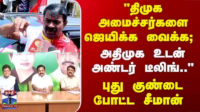 Seeman | DMK | AIADMK | BJP | அதிமுக தொகுதி ஒதுக்கீடு - சீமான் விமர்சனம் #Seeman #DMK #AIADMK #BJP திமுக அமைச்சர்களின் தொகுதிகளை பாஜகவுக்கு அதிமுக ஒதுக்கியுள்ளதாக சீமான் குற்றம்சாட்டியுள்ளார்... அமைச்சர்களின் தொகுதிகளை பாஜகவுக்கு ஒதுக்கியது என்பது ஒரு ஒப்பந்தம் என்றும் அவர் சாடியுள்ளார்...