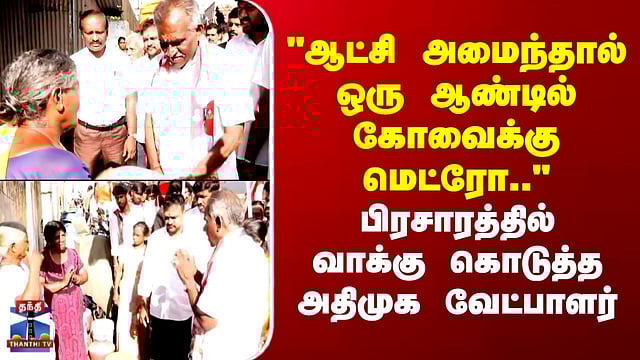 கோவை தெற்கு தொகுதியில் பிரச்சாரத்தின் போது பேட்டியளித்த அதிமுக வேட்பாளர் அம்மன் அர்ஜுசுனன், அதிமுக ஆட்சி அமைந்தால் ஒரு ஆண்டிற்குள் கோவைக்கு மெட்ரோ திட்டம் கொண்டு வருவோம் என உறுதியளித்தார். மேலும் மெட்ரோ திட்டம் தாமதமானதற்கு திமுக அரசு சரியான ஆவணங்களை மத்திய அரசுக்கு வழங்காததே காரணம் என குற்றம்சாட்டிய அவர், மக்களின் தேவைகளை முன்னிட்டு திட்டங்களை விரைவாக செயல்படுத்துவோம் என்றும் தெரிவித்தார்.