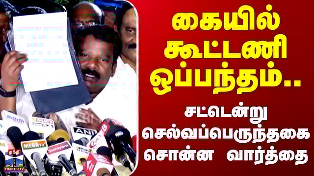 கையில் கூட்டணி ஒப்பந்தம்.. சட்டென்று செல்வப்பெருந்தகை சொன்ன வார்த்தை #selvaperunthagai #mkstalin #cmstalin #tnpolitics #tnelection #election2026 #thanthitv #congress #dmk திமுகவுடனான பேச்சுவார்த்தைக்கு பின் செய்தியாளர்களை சந்தித்த செல்வப்பெருந்தகை, மிகுந்த மனநிறைவோடு கூட்டணியை இறுதி செய்துள்ளதாக தெரிவித்தார். தமிழக காங்கிரஸ் தலைவர் செல்வப்பெருந்தகை
