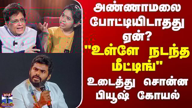 அண்ணாமலை போட்டியிடாதது ஏன்? - "உள்ளே நடந்த மீட்டிங்" உடைத்து சொன்ன பியூஷ் கோயல் பாஜக மூத்த தலைவர் அண்ணாமலை தேர்தலில் போட்டியிடாதது குறித்து, மத்திய அமைச்சரும் பாஜக மேலிட பொறுப்பாளருமான பியூஷ் கோயல், தந்தி டிவிக்கு அளித்த பிரத்யேக நேர்காணலைக் பார்க்கலாம்...