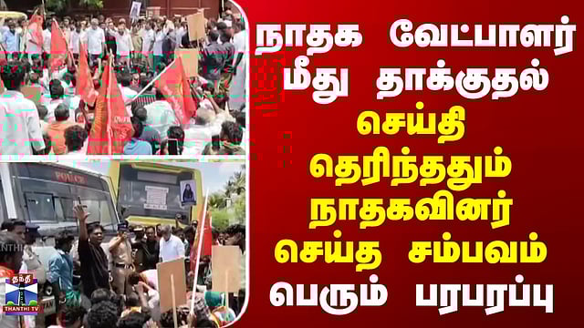 நாதக வேட்பாளர் மீது தாக்குதல்... செய்தி தெரிந்ததும் நாதகவினர் செய்த சம்பவம்... பெரும் பரபரப்பு நாதக வேட்பாளர் மீது தாக்குதல் – காவல் நிலையம் முற்றுகை, சாலை மறியல் தஞ்சாவூர் மாவட்டம், பாபநாசம் தொகுதியில் நாம் தமிழர் கட்சி வேட்பாளர் மீது தாக்குதல் நடத்தப்பட்டுள்ளது. தாக்குதல் நடத்தியவர்களை கைது செய்யக்கோரி 500க்கும் மேற்பட்ட நாம் தமிழக கட்சியினர் அம்மாப்பேட்டை காவல் நிலையத்தை முற்றுகையிட்டு சாலை மறியல் போராட்டத்தில் ஈடுப்பட்டனர். காவல்துறை அதிகாரிகளுடன் பேச்சுவார்த்தை உடன்பாடு எட்டப்படாததால் போராட்டத்தில் ஈடுபட்டவர்களை காவல்துறையினர் கைது செய்து தனியார் திருமண மண்டபத்தில் அடைத்தனர்.