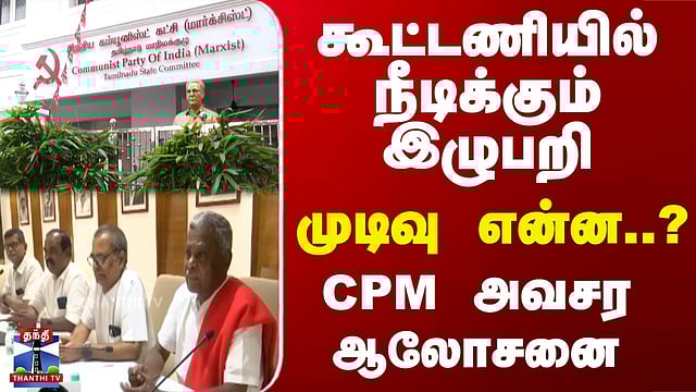 Breaking | CPM | TN Elections | கூட்டணியில் நீடிக்கும் இழுபறி.. முடிவு என்ன..? CPM அவசர ஆலோசனை.. #DMK #CPM #TNElections #TNPolitics தொகுதி பங்கீட்டில் இழுபறி - மார்க்சிஸ்ட் கம்யூ. அவசர ஆலோசனை/திமுக கூட்டணியில் தொகுதி பங்கீட்டில் இழுபறி - மார்க்சிஸ்ட் கம்யூனிஸ்ட் அவசர ஆலோசனை/சென்னையில் மார்க்சிஸ்ட் கம்யூனிஸ்ட் கட்சியின் செயற்குழு கூட்டம் தொடங்கியது/தி. நகரில் உள்ள மார்க்சிஸ்ட் கம்யூனிஸ்ட் தலைமை அலுவலகத்தில் செயற்குழு கூட்டம்/மார்க்சிஸ்ட் கம்யூனிஸ்ட் கட்சிக்கு 5 தொகுதிகளை ஒதுக்க முன்வரும் திமுக/6 தொகுதிகள் அல்லது அதற்கும் மேல் ஒதுக்கப்பட வேண்டும் என மார்க்சிஸ்ட் கம்யூனிஸ்ட் வலியுறுத்தல்