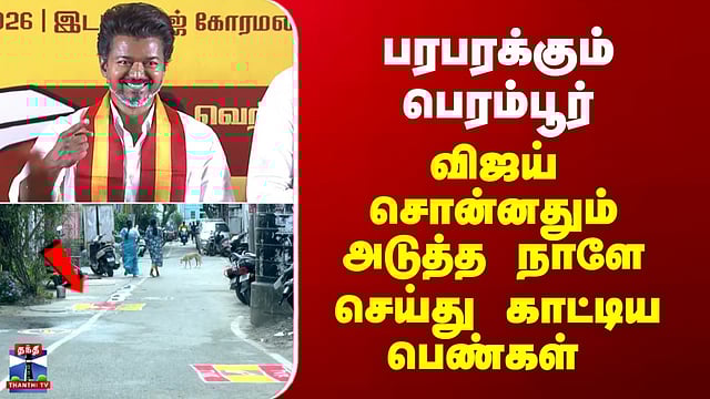 TVK Vijay | Perambur | பரபரக்கும் பெரம்பூர்.. விஜய் சொன்னதும் அடுத்த நாளே செய்து காட்டிய பெண்கள் #tnelection2026 #tamilnaduelection2026 #tnassemblyelection2026 #tamilnaduelection #tnelection #tnassemblyelection #assemblyelection #electioncommission #election2026 #electionswiththanthitv #thanthitv #therthalthiruvizha #tvkvijay #thanthitv விஜய் போட்டியிடும் பெரம்பூர் தொகுதியில் வீட்டு வாசலில் தவெக பெண் தொண்டர்கள் விசில் கோலம் போட்டுள்ளனர்.... தமிழக வெற்றி கழக தலைவர் விஜய் நேற்று தவெக தேர்தல் அறிக்கை வெளியிட்டார்.... அந்த நிகழ்ச்சியின்போது, வீட்டு வாசலில் விசில் கோலம் இடும்படி பெண்களுக்கு விஜய் கோரிக்கை வைத்தார் இந்நிலையில், விஜய் போட்டியிடும் பெரம்பூர் தொகுதிக்குட்பட்ட கவிஞர் கண்ணதாசன் நகர் கொடுங்கையூர் உள்ளிட்ட பகுதிகளில் தவெக பெண் தொண்டர்கள் விதவிதமாக விசில் கோலம் போட்டுள்ளனர்.