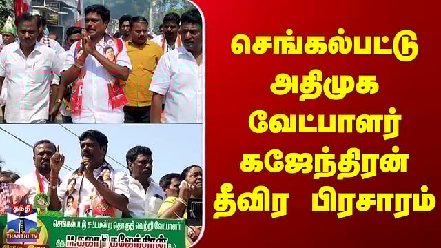 Chengalpattu | செங்கல்பட்டு அதிமுக வேட்பாளர் கஜேந்திரன் தீவிர பிரசாரம் #chengalpattu #tnelection2026 #tnpolitics #Gajendran #campaign #thanthitv செங்கல்பட்டு சட்டமன்ற தொகுதியில் அதிமுக வேட்பாளர் கஜேந்திரன் தீவிர தேர்தல் பிரச்சாரத்தில் ஈடுபட்டு வருகிறார். குறிப்பாக காந்திநகர், நின்னகரை, காட்டாங்குளத்தூர் உள்ளிட்ட பல்வேறு பகுதிகளில் வாக்கு சேகரித்த அவருக்கு அதிமுக மற்றும் அதன் கூட்டணி கட்சியினர் உற்சாக வரவேற்பு அளித்தனர். பிரச்சாரத்தின் போது பேசிய அவர், உள்ளூர் இளைஞர்களுக்கு வேலைவாய்ப்பில் முன்னுரிமை வழங்கப்படும் என்றும், திறன் மேம்பாட்டு பயிற்சி மையம் அமைக்கப்படும் என்றும் வாக்குறுதி அளித்தார். மேலும், மறைமலைநகர் பகுதியில் போதைப்பொருள் பிரச்சினையை கட்டுப்படுத்த நடவடிக்கை எடுக்கப்படும் என்றும் தெரிவித்தார்.