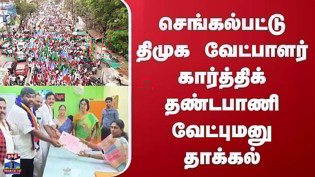 Chengalpattu | DMK | செங்கல்பட்டு திமுக வேட்பாளர் கார்த்திக் தண்டபாணி வேட்புமனு தாக்கல் #chengalpattu #dmk #KarthikDhandapani #tnelection2026 #tnpolitics #thanthitv செங்கல்பட்டு தொகுதியில் திமுக வேட்பாளர் கார்த்திக் தண்டபாணி வேட்புமனு தாக்கல் செய்தார். வேட்புமனு தாக்கலின்போது செங்கல்பட்டு ராட்டிணங்கிணறு பகுதியில் இருந்து அரசு கலைக்கல்லூரி வழியாக மேளதாளங்கள் முழங்க பிரம்மாண்ட பேரணி நடைபெற்றது. இதில் திமுக மற்றும் கூட்டணி கட்சிகளைச் சேர்ந்த ஆயிரத்திற்கும் மேற்பட்டோர் கலந்து கொண்டனர். பின்னர், ஆதரவாளர்கள் முன்னிலையில் கார்த்திக் தண்டபாணி தனது வேட்புமனுவை அதிகாரிகளிடம் தாக்கல் செய்தார்.