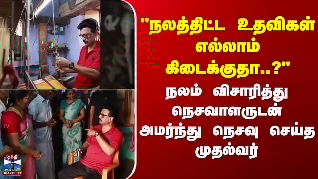 "நலத்திட்ட உதவிகள் எல்லாம் கிடைக்குதா..?" - நலம் விசாரித்து நெசவாளருடன் அமர்ந்து நெசவு செய்த முதல்வர்