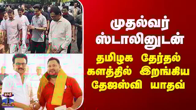 CM Stalin | Tejashwi Yadav | முதல்வர் ஸ்டாலினுடன் தமிழக தேர்தல் களத்தில் இறங்கிய தேஜஸ்வி யாதவ்