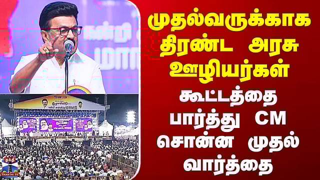 CM Stalin Speech | முதல்வருக்காக திரண்ட அரசு ஊழியர்கள் - கூட்டத்தை பார்த்து CM சொன்ன முதல் வார்த்தை தமிழ்நாடு அரசு ஊழியர்கள் மற்றும் ஆசிரியர்களின் கூட்டமைப்பான ஜாக்டோ-ஜியோ சார்பில், தமிழ்நாடு முதலமைச்சர் ஸ்டாலினுக்கு பாராட்டுத் தெரிவிக்கும் வகையில் சென்னை நந்தனத்தில் உள்ள YMCA மைதானத்தில் 'நன்றி அறிவிப்பு மாநாடு