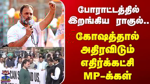 போராட்டத்தில் இறங்கிய ராகுல்.. கோஷத்தால் அதிரவிடும் எதிர்க்கட்சி MP-க்கள் மக்களவையில் இருந்து சஸ்பெண்ட் செய்யப்பட்ட எம்.பி.க்கள் போராட்டம் மக்களவையில் இருந்து சஸ்பெண்ட் செய்யப்பட்ட எம்.பி.,க்கள் நாடாளுமன்ற வளாகத்தில் போராட்டத்தில் ஈடுபட்டு வருகின்றனர்... அதனை காணலாம்...