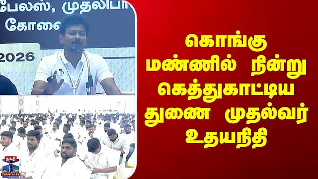 DMK Udhayanithi Stalin | கொங்கு மண்ணில் நின்று கெத்துகாட்டிய துணை முதல்வர் உதயநிதி #kovai #dmk #udhayanithistalin #thanthitv மேற்கு மண்டலம் திமுக கோட்டை - உதயநிதி ஸ்டாலின் பேச்சு சட்டமன்றத் தேர்தலில் மேற்கு மண்டலம் திமுகவின் கோட்டை என்பதை நிரூபிக்க தொண்டர்கள் கடுமையாக உழைக்க வேண்டும் என்று துணை முதலமைச்சர் உதயநிதி ஸ்டாலின் கேட்டுக் கொண்டார். கோவை முதலிபாளையத்தில் நடைபெற்ற திமுக இளைஞரணி ஆலோசனை கூட்டத்தில் துணை முதலமைச்சர் உதயநிதி ஸ்டாலின் கலந்து கொண்டார். அப்போது பேசிய அவர், அரசின் நலத்திட்டங்களை மக்களிடம் எடுத்துச் சென்று மீண்டும் திமுக வெற்றியை உறுதி செய்ய வேண்டும் என்றும் வலியுறுத்தினார். கூட்டத்திற்குப் பிறகு நிர்வாகிகள் மற்றும் தொண்டர்களுடன் உதயநிதி ஸ்டாலின் புகைப்படம் எடுத்துக் கொண்டார்.