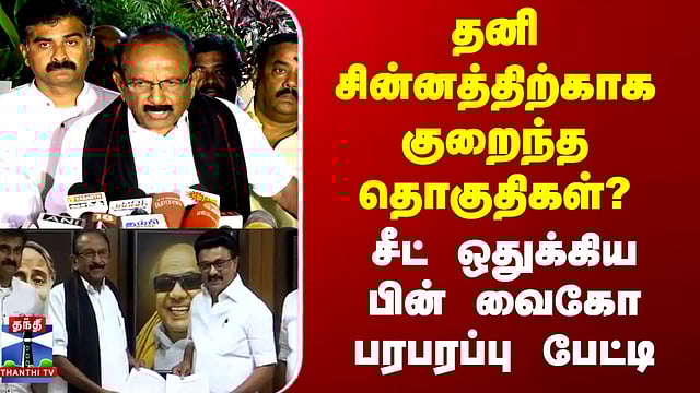 DMK Alliance | Vaiko |தனி சின்னத்திற்காக குறைந்த தொகுதிகள்? சீட் ஒதுக்கிய பின் வைகோ பரபரப்பு பேட்டி