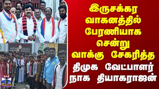 இருசக்கர வாகனத்தில் பேரணியாக சென்றுவாக்கு சேகரித்த திமுக வேட்பாளர் நாக தியாகராஜன்