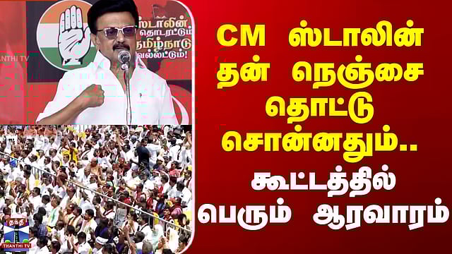 DMK | CM ஸ்டாலின் தன் நெஞ்சை தொட்டு சொன்னதும்.. கூட்டத்தில் பெரும் ஆரவாரம்