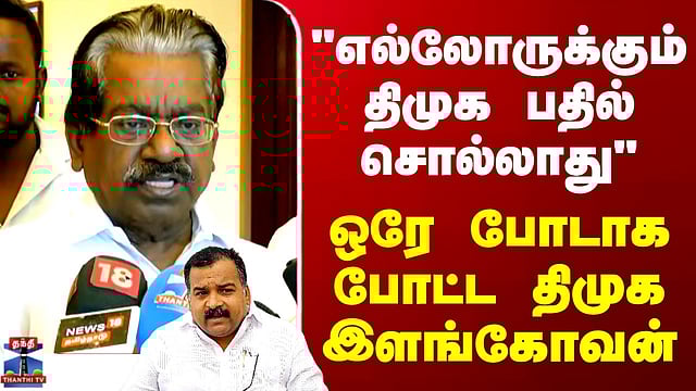 "எல்லோருக்கும் திமுக பதில் சொல்லாது" - ஒரே போடாக போட்ட திமுக இளங்கோவன் #dmk #admk #congress #tnpolitics #tnelection2026 #politics #manickamtagore #tkselangovan #thanthitv “மாணிக்கம் தாகூர் கருத்துக்கெல்லாம் திமுக பதில் சொல்லாது“ காங்கிரஸ் கட்சியில் மாநில தலைவர், தேசிய தலைவர் மற்றும் ராகுல் காந்தி போன்றவர்களின் கருத்துக்களுக்கு மட்டும் தான் திமுக பதில் சொல்லும் என, அக்கட்சியின் செய்தி தொடர்பு குழு தலைவர் டி.கே.எஸ்.இளங்கோவன் தெரிவித்துள்ளார்.