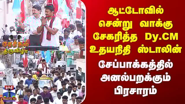Chennai | Udhayanidhi Stalin | TN Election 2026 | ஆட்டோவில் சென்று வாக்கு சேகரித்த Dy. CM உதயநிதி ஸ்டாலின் | சேப்பாக்கத்தில் அனல்பறக்கும் பிரசாரம் #chepauk #udhayanidhistalin #tnelection2026 #thanthitv ஆட்டோவில் சென்று துணை முதல்வர் உதயநிதி ஸ்டாலின் பிரசாரம் தீவிர வாக்குசேகரிப்பில் ஈடுபட்டுள்ள உதயநிதி ஸ்டாலின் சென்னை சேப்பாக்கம் - திருவல்லிக்கேணி தொகுதியில் பிரசாரத்தில் ஈடுபட்ட திமுக வேட்பாளரும், துணை முதலமைச்சருமான உதயநிதி ஸ்டாலின்