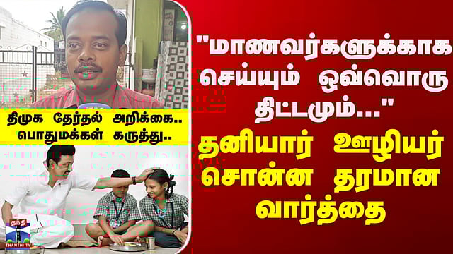 Thanthi TV Street Interview | Makkal Kural | "மாணவர்களுக்காக செய்யும் ஒவ்வொரு திட்டமும்" - தனியார் ஊழியர் சொன்ன தரமான வார்த்தை #streetinterview #makkalkural #dmk #dmkmanifesto #thanthitv 8ம் வகுப்பு வரை காலை உணவு திட்டம் பயன்தருமா? திமுக தேர்தல் அறிக்கை குறித்து பொதுமக்கள் கருத்து? முதலமைச்சரின் காலை உணவுத்திட்டம் 8ம் வகுப்பு வரை விரிவுப்படுத்தப்படும் என்ற திமுகவின் தேர்தல் வாக்குறுதி குறித்து மக்கள் குரல் பகுதியில், பல்வேறு பகுதி மக்கள் தெரிவித்த கருத்துக்களைப் பார்க்கலாம்...