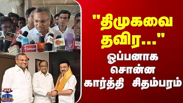 Karti Chidambaram | Congress | DMK | "திமுகவை தவிர..." - ஓப்பனாக சொன்ன கார்த்தி சிதம்பரம் #kartichidambaram #congress #dmk #thanthitv திமுகவுடன் சுமூக உடன்பாடு எட்டும்- கார்த்தி சிதம்பரம் நம்பிக்கை திமுகவுடன் நடத்தப்படும் பேச்சுவார்த்தையில் சுமூக உடன்பாடு எட்டப்படும் என நம்பிக்கை தெரிவித்துள்ள காங்கிரஸ் நாடாளுமன்ற உறுப்பினர் கார்த்தி சிதம்பரம், விஜய் ஆதரவு கூட்டம் வாக்குகளாக வருமா என்பது கேள்விக்குறி எனவும் கூறியுள்ளார்.