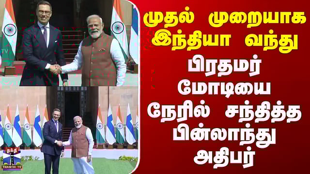 #Delhi | #PMModi | #AlexanderStubb | #Finland | #NationalNews | #ThanthiTV PM Modi | Delhi | முதல் முறையாக இந்தியா வந்து பிரதமர் மோடியை நேரில் சந்தித்த பின்லாந்து அதிபர் அலெக்ஸாண்டர் ஸ்டப் பிரதமர் மோடி உடன் பின்லாந்து அதிபர் அலெக்சாண்டர் ஸ்டப் சந்திப்பு அரசு முறை பயணமாக இந்தியா வந்துள்ள பின்லாந்து அதிபர் அலெக்ஸாண்டர் ஸ்டப்(Alexander Stubb), டெல்லியில் பிரதமர் மோடியை சந்தித்து ஆலோசனை நடத்தி வருகிறார். இதுகுறித்து கூடுதல் தகவல்களை செய்தியாளர் ரமேஷ்குமாரிடம் கேட்கலாம்..