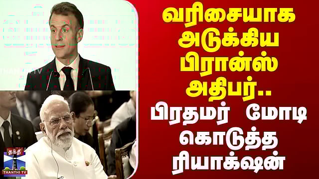 வரிசையாக அடுக்கிய பிரான்ஸ் அதிபர்.. பிரதமர் மோடி கொடுத்த ரியாக்ஷன் #emmanuelmacron #france #pmmodi #india #thanthitv "பிரான்சின் மிக நம்பிக்கைக்குரிய கூட்டாளி இந்தியா" - பிரான்ஸ் அதிபர் இந்தியா மற்றும் பிரான்சுக்கு இடையேயான உறவு தனித்துவமானது என்றும் பிரான்சின் மிக நம்பிக்கைக்குரிய கூட்டாளியாக இந்தியா இருப்பதாகவும் பிரான்ஸ் அதிபர் இம்மானுவேல் மேக்ரான் தெரிவித்துள்ளார். "பிரான்சின் மிக நம்பிக்கைக்குரிய கூட்டாளி இந்தியா" - பிரான்ஸ் அதிபர் இந்தியா மற்றும் பிரான்சுக்கு இடையேயான உறவு தனித்துவமானது என்றும் பிரான்சின் மிக நம்பிக்கைக்குரிய கூட்டாளியாக இந்தியா இருப்பதாகவும் பிரான்ஸ் அதிபர் இம்மானுவேல் மேக்ரான் தெரிவித்துள்ளார்.