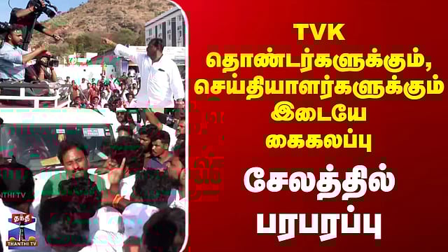 TVK தொண்டர்களுக்கும், செய்தியாளர்களுக்கும் இடையே கைகலப்பு