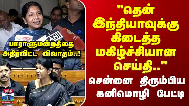 "தென் இந்தியாவுக்கு கிடைத்த மகிழ்ச்சியான செய்தி.." சென்னை திரும்பிய கனிமொழி பேட்டி #kanimozhi #delimitation #chennai TN Election 2026 | #tnelection2026 #tamilnaduelection2026 #tnassemblyelection2026 #tamilnaduelection #tnelection #tnassemblyelection #assemblyelection #electioncommission #election2026 #electionswiththanthitv #thanthitv #therthalthiruvizha