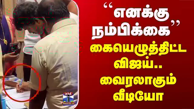 #vijay #tvk #tiruchendur இந்து மதத்தின் மீது நம்பிக்கை இருக்கிறது என படிவத்தில் கையெழுத்திட்ட விஜய் திருச்செந்தூர் சுப்பிரமணிய சுவாமி கோவிலுக்கு வந்த தவெக தலைவர் விஜய், சுவாமி தரிசனம் செய்வதற்கு முன்பாக, இந்து மதத்தின் மீது நம்பிக்கை வைத்துள்ளதாக கூறி படிவத்தில் கையெழுத்திட்டுள்ளார்... திருச்செந்தூர் சுப்பிரமணிய சுவாமி கோவிலுக்கு நேற்று வருகை தந்த விஜய் அதிகாலையிலேயே சுவாமி தரிசனம் செய்தார்... முன்னதாக, தான் கிறிஸ்தவர் என்பதால் சண்முக விலாச மண்டபத்தில் உள்ள கண்காணிப்பாளர் அலுவலகத்தில், இந்து சமய அறநிலையத்துறை சட்டபடி படிவத்தில் கையெழுத்திட்டார். இந்து மதத்தின் மீது நம்பிக்கை வைத்துள்ளதாகவும், கடவுள் மீது நம்பிக்கை வைத்து தரிசனம் செய்வதாகவும் படிவத்தில் கையெழுத்திட்டு கோவில் நிர்வாகத்தினரிடம் விஜய் வழங்கினார்.