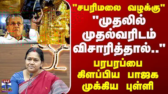 "முதலில் முதல்வரிடம் விசாரித்தால்.." பரபரப்பை கிளப்பிய பாஜக முக்கிய புள்ளி #sabarimala #sabarimalacase #pinarayivijayan #bjp #politics #thanthitv "சபரிமலை வழக்கு - முதல்வரிடம் விசாரணை நடத்த வேண்டும்" - பாஜக கேரளாவில் சபரிமலை நகை திருட்டு வழக்கு தொடர்பாக முதலில் முதலமைச்சரிடம் விசாரணை நடத்த வேண்டும் என்றும் அவரிடம் விசாரித்தால் ""தங்கம் எங்கே போனது? இந்த ஒப்பந்தத்தில் எவ்வளவு பணம் கிடைத்தது என்பது தெரியவரும்.."" என்று அம்மாநில பாஜக பொதுச் செயலாளர் ஷோபா சுரேந்திரன் தெரிவித்துள்ளார்.