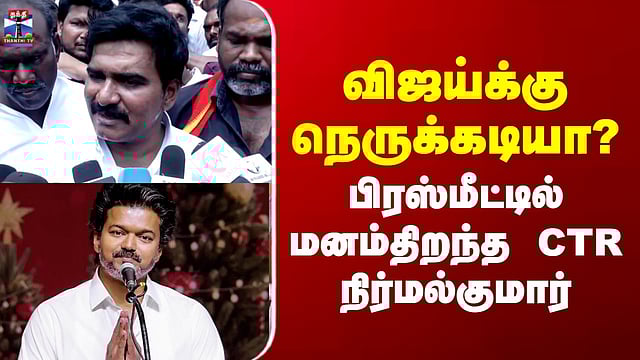 TVK Vijay | Karur Case | விஜய்க்கு நெருக்கடியா? - பிரஸ்மீட்டில் மனம்திறந்த CTR நிர்மல்குமார் #tvkvijay #karurcase #cbi சிபிஐ மூலம் தவெக தலைவர் விஜய்க்கு பாஜக நெருக்கடி கொடுக்கிறதா என்ற செய்தியாளர்கள் கேள்விக்கு பதிலளித்த கட்சியின் துணைப் பொதுச் செயலாளர் சிடிஆர் நிர்மல் குமார், எத்தனை நெருக்கடிகள் வந்தாலும் அதை விஜய் எதிர்கொள்வார் என தெரிவித்துள்ளார்..