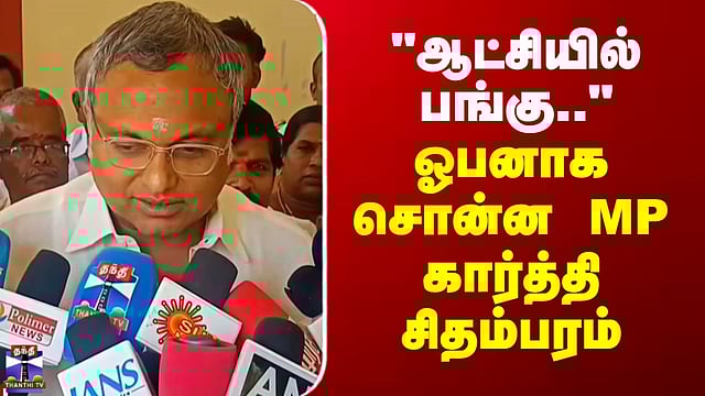 Karti Chidambaram | Congress | "ஆட்சியில் பங்கு.." -ஓபனாக சொன்ன காங்கிரஸ் எம்.பி. கார்த்தி சிதம்பரம் #KartiChidambaram #congress #dmkalliance #dmk #thanthitv "ஆட்சியில் பங்கு, அனைத்து கட்சிகளின் எதிர்பார்ப்புதான்" ஆட்சியில் பங்கு என்பது, அனைத்து கட்சிகளுக்கும் உள்ள எதிர்பார்ப்புதான், அதனை தேர்தலில் வெற்றி பெற்ற பிறகுதான் முடிவு செய்ய முடியும் என்று காங்கிரஸ் எம்.பி. கார்த்தி சிதம்பரம் தெரிவித்துள்ளார்.