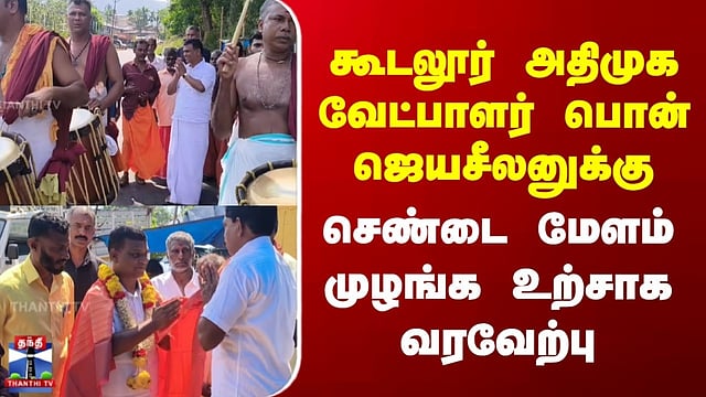 Gudalur | ADMK | TN Election 2026 | கூடலூர் அதிமுக வேட்பாளர் பொன் ஜெயசீலனுக்கு செண்டை மேளம் முழங்க உற்சாக வரவேற்பு #Gudalur #ADMK #TNelection2026 #thanthitv அதிமுக வேட்பாளர் பொன் ஜெயசீலனுக்கு செண்டை மேளம் முழங்க உற்சாக வரவேற்பு நீலகிரி மாவட்டம் கூடலூர் நந்தெட்டி பகுதியில் முருகன் கோயிலுக்கு சென்ற, கூடலூர் அதிமுக வேட்பாளர் பொன் ஜெயசீலனுக்கு செண்டை மேளங்கள் முழங்க உற்சாக வரவேற்பு அளிக்கப்பட்டது. தமிழக சட்டமன்றத் தேர்தல் களம் சூடுபிடித்துள்ள நிலையில், கூடலூர் அதிமுக வேட்பாளர் பொன் ஜெயசீலன் தீவிர வாக்கு சேகரிப்பில் ஈடுபட்டார். தேயிலைத் தோட்டத் தொழிலாளர்கள் மற்றும் குடியிருப்புப் பகுதிகளில் பிரசாரத்தைத் தீவிரப்படுத்தியுள்ள பொன் ஜெயசீலன், வீடு வீடாகச் சென்று இரட்டை இலை சின்னத்திற்கு ஆதரவு திரட்டினார். இந்நிலையில் நந்தெட்டி பகுதியில் உள்ள முருகன் கோயிலுக்கு வருகை தந்த அவருக்கு, பொதுமக்கள் மற்றும் கட்சித் தொண்டர்கள் செண்டை மேளங்கள் முழங்க சிறப்பு வரவேற்பு அளித்தனர். தொடர்ந்து மசனகுடி மசினி அம்மன் கோயிலில் சாமி தரிசனம் செய்ய வந்த அவருக்கு, கோவில் நிர்வாகம் மற்றும் பொதுமக்கள் சார்பில் பரிவட்டம் கட்டிச் சிறப்பான மரியாதையும் செய்யப்பட்டது.
